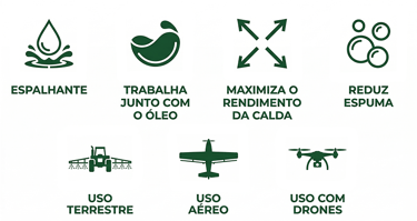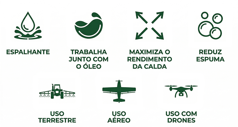 Melhora o espalhamento da calda e reduz espuma.