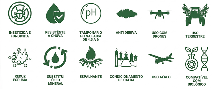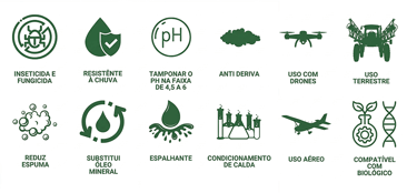 adjuvante versátil e completo para diferentes sistemas produtivos.